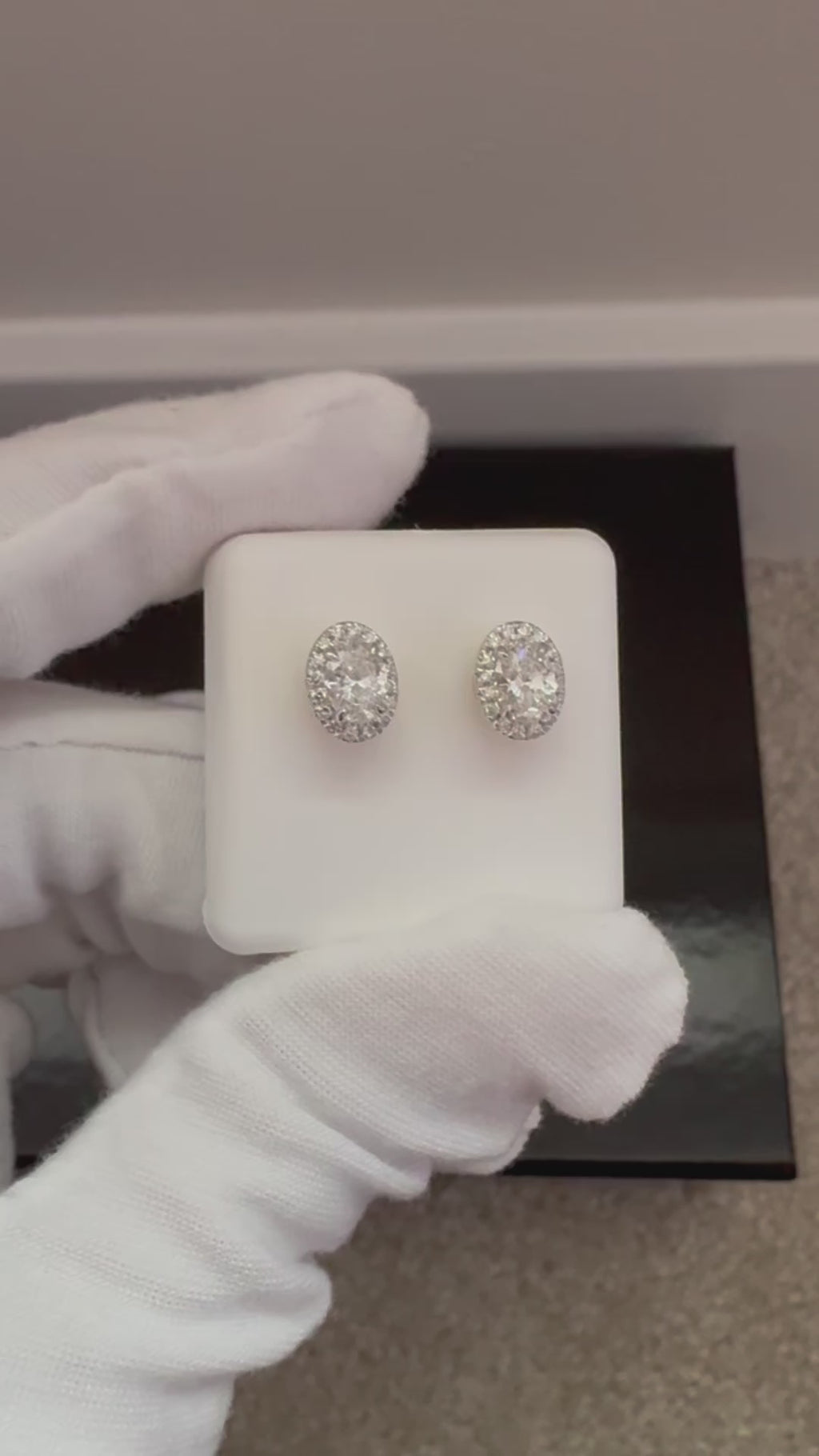 14KT 1.15CT Lab Diamond YG Oval Halo Stud Earrings